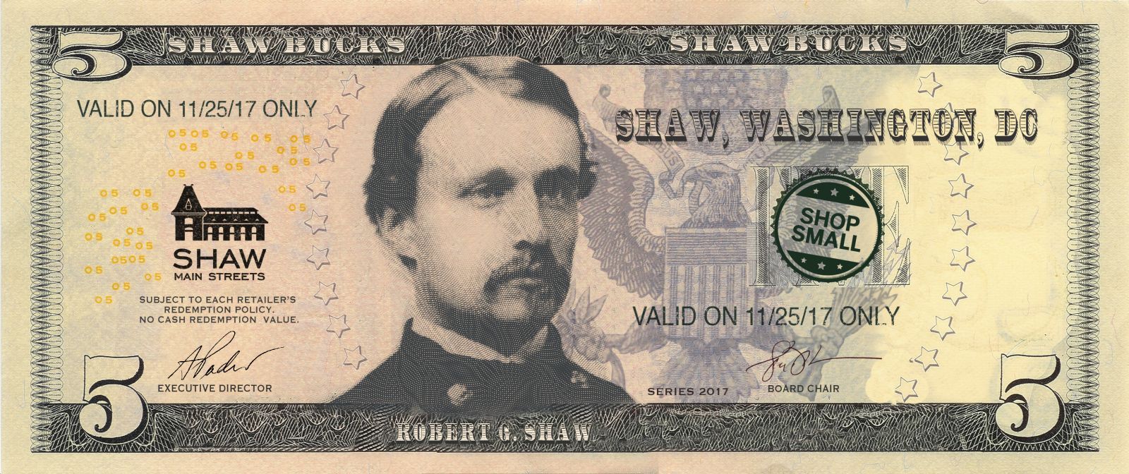 Visit the Shaw Main Streets tent at City Market at O (east side of 1400 block of 8th Street, NW) from 11 AM-7 PM on 11/26/22 and pick up $20 in “Shawbucks” to use at participating Shaw Main Streets businesses just like cash! These $5 bills will be deducted from the cost of your purchase. “Shawbucks” available while supplies last. No minimum purchase required. Valid 11/26/22 only.